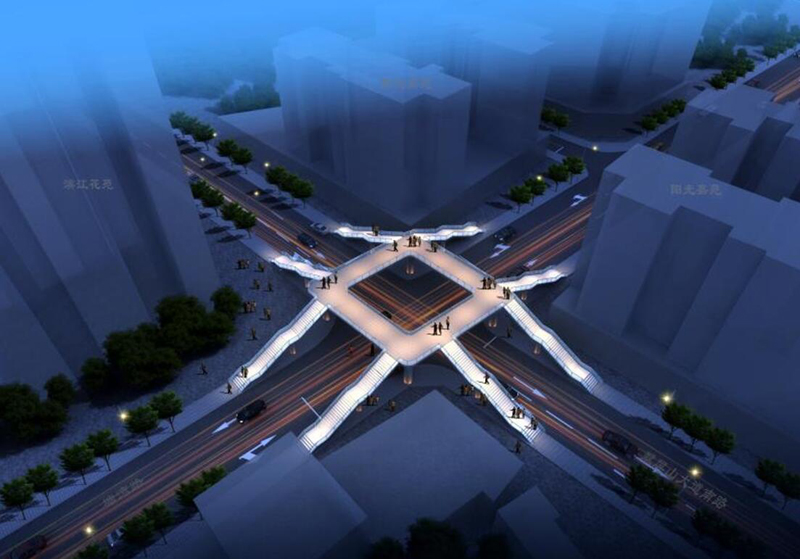 酉阳县过街人行天桥(一期)项目:(1)钟多小学人行天桥采用“菱”形平面布置,天桥主梁宽度4.2m,净宽4.0m;梯道宽2.5m,净宽2.3m;在梯道两级休息平台均设置梯道墩,梯道下设置管理用房;(2)民族小学人行天桥:天桥采用“H”形平面布置,天桥主梁宽度4.2m,净宽4.0m;梯道宽2.6m,净宽2.4m;在梯道两级休息平台均设置梯道墩,梯道下设置管理用房;(3)尊龙凯时人生就是赢小学人行天桥:天桥采用“工字型”天桥全长13.1m,桥面横向全宽3.2m,净宽3.0m;梯道宽2.0m,净宽1.8m,每18级台阶设置休息平台。本工程于2018年10月19日开工建设,2019年10月16日完成全部工程建设。